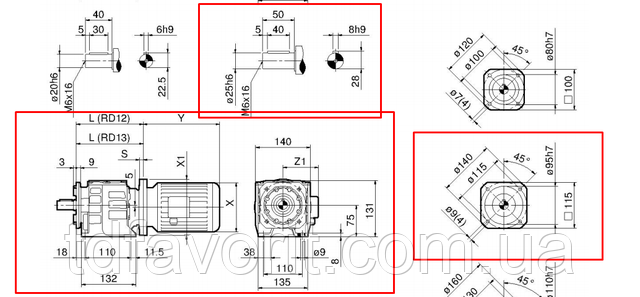 | Типорозмір: двоступінчастих редукторів триступінчатих редукторів |