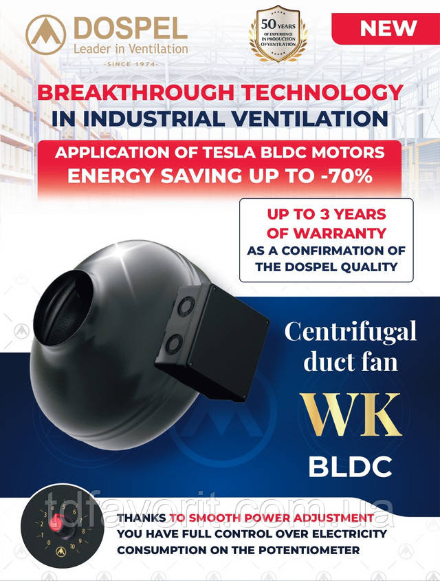 Вентилятор DOSPEL WK BLDC N. Tesla є промисловим припливно-витяжним вентилятором для