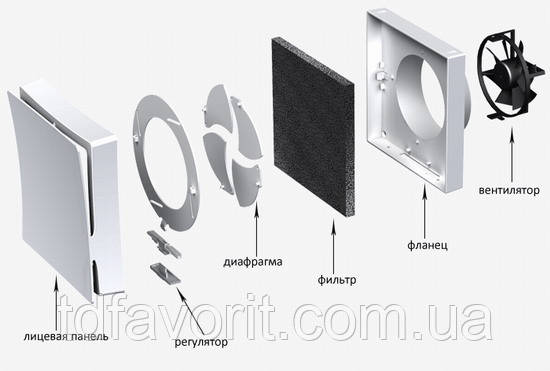 - Для виробництва внутрішньої решітки застосовується надякісний АБС пластик, який обладнаний фільтром від пилу. За допомогою вбудованого регулятора допускається регулювання посічення потоку повітря або повне перекриття каналу.